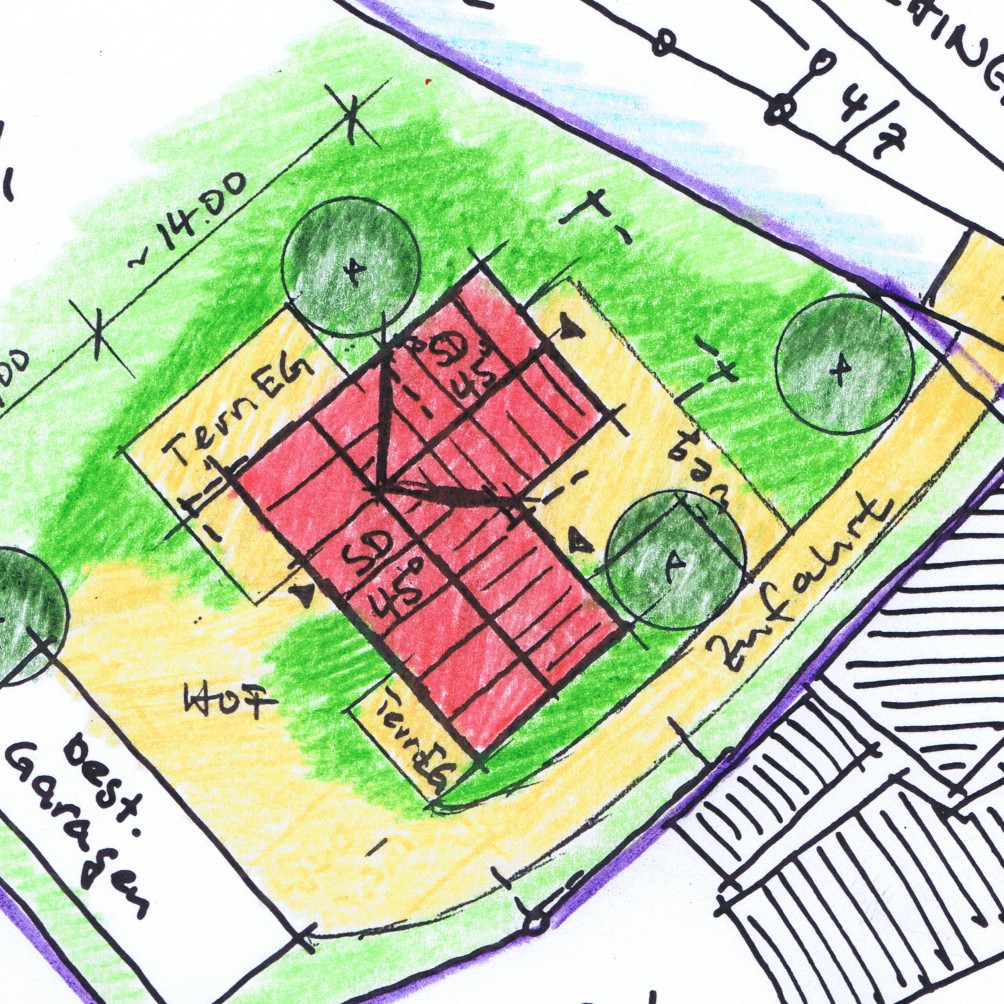 Wir erstellen erste Hausentwürfe und einen Lageplanentwurf für Ihr Projekt.